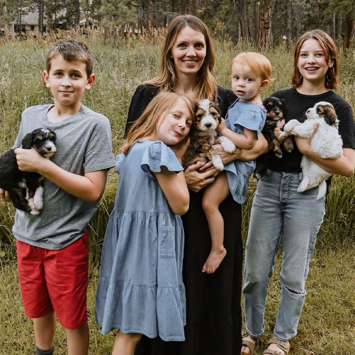 My name is Kjirsten (silent j), and I am the proud owner of Mercy Mountain Doodles. I am a single mom of four beautiful children and am living my dream on our small forest farm. My children are the heart of my world and share my passion for animals. Growing up, I had all kinds of animals, from hamsters to kittens and rabbits, dogs, and horses. Dogs have consistently held a profoundly significant role in my life's journey.