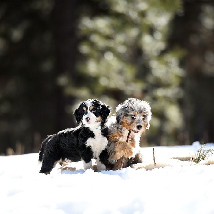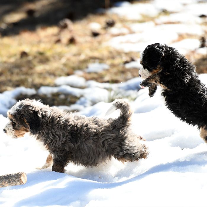 With selective and intentional ethical breeding Bernedoodles can inherit the best qualities of their parent breeds. The Bernese Mountain Dog is known for its loyalty, calm demeanor, and gentle nature, while Poodles are highly intelligent, hypoallergenic, and come in a variety of sizes. Together, they create a hybrid that is family oriented, calm, gentle, intelligent, and low-shedding—a combination that is hard to beat.