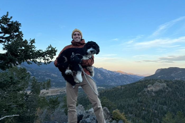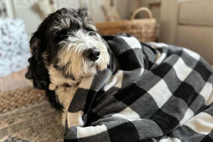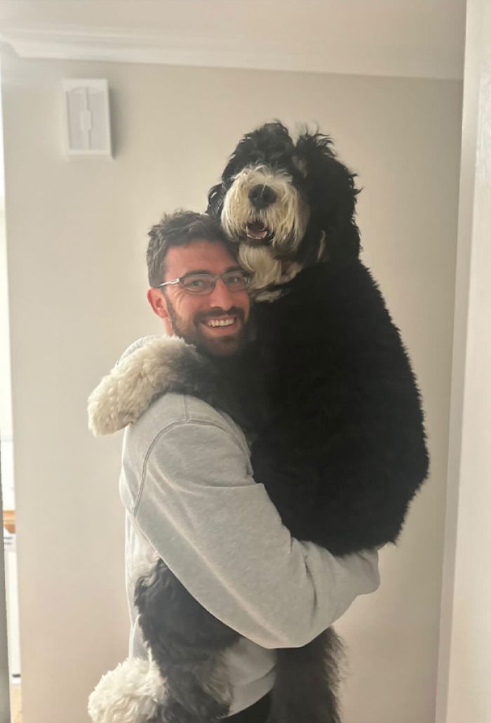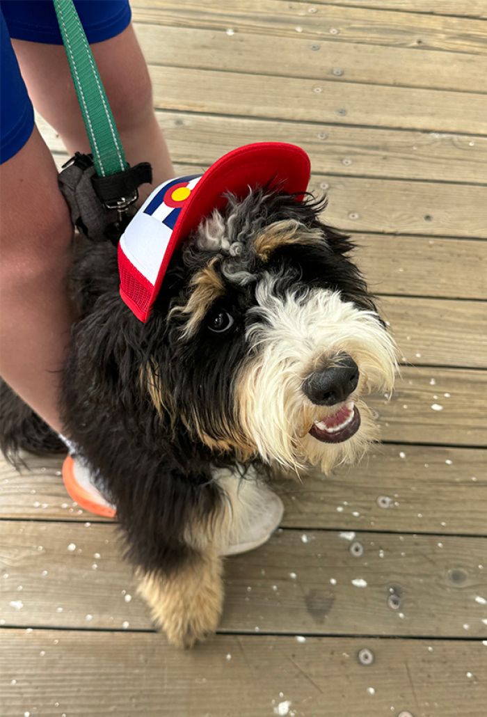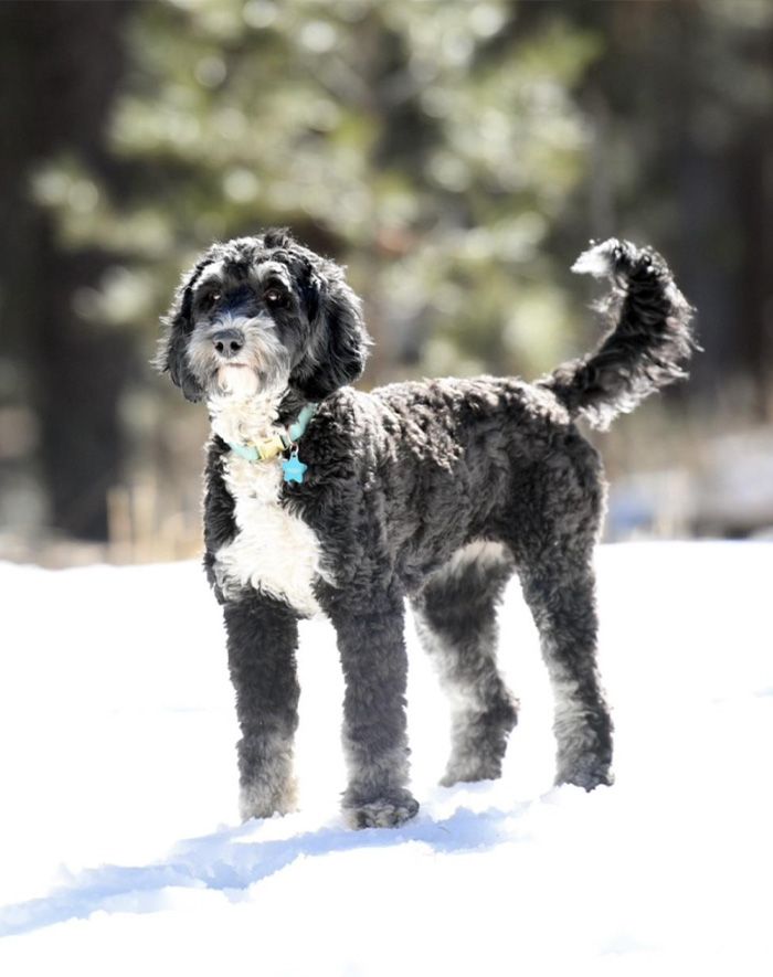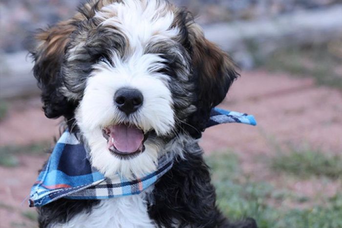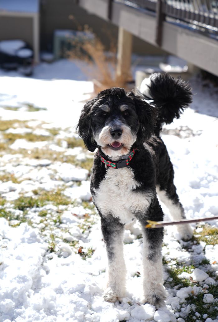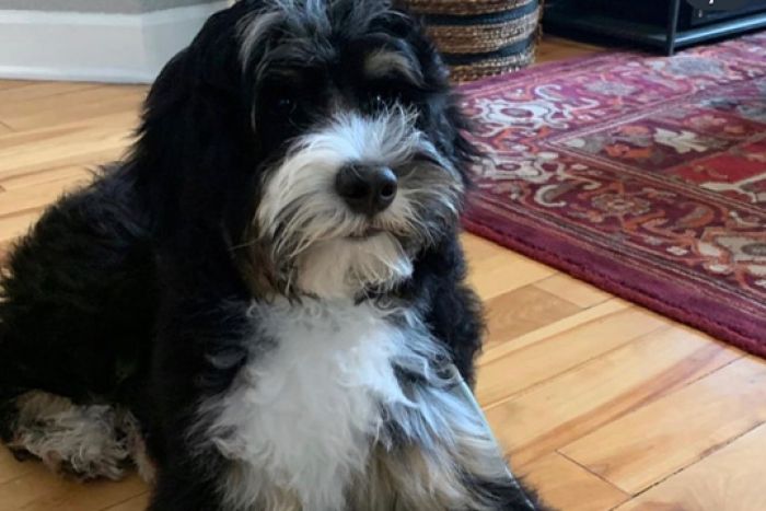 Bogey is an adorable 19-pound traditional tri mini Bernedoodle from Florida.