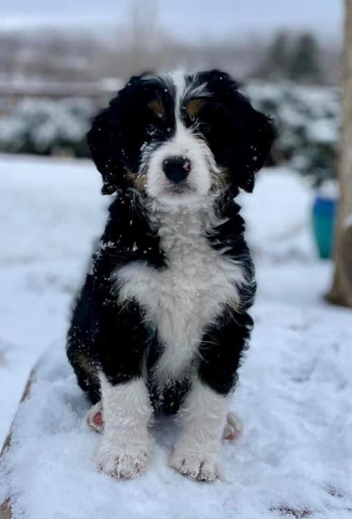 This litter is considered “ultra Bernedoodles” because the pups will be over 50% Bernese but with allergy-sensitive furnished coats. I expect these pups to be over 50 pounds full-grown. Pups will all be traditional tri, merle tri, and chocolate tri. Coats will be furnished– wavy and straight. Pups are due March 25th and will be ready for their new homes by the end of July. These puppies will have fantastic service and therapy potential. Puppies are $3000 with a $250 deposit to hold pick spot. We have availability on this litter.